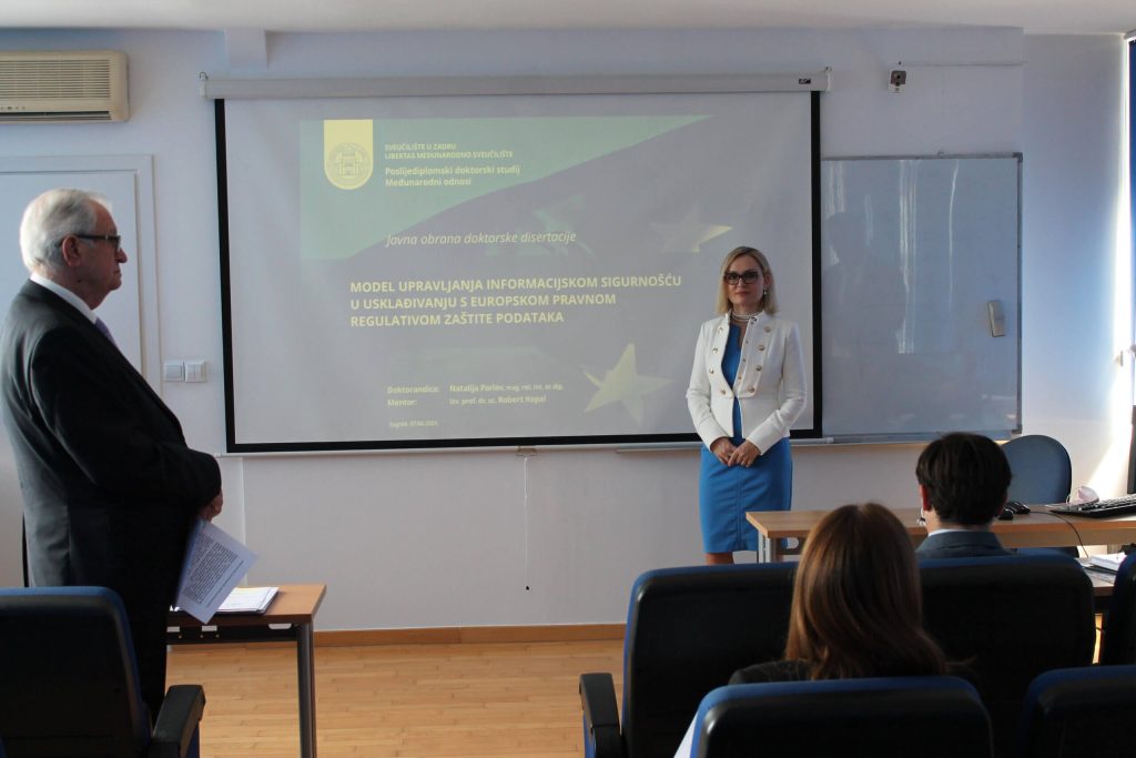 Na Libertas Sveučilištu dana 7. lipnja 2021. godine Natalija Parlov mag. rel.int.et.dipl. uspješno je obranila doktorsku disertaciju pod naslovom “Model upravljanja informacijskom sigurnošću u usklađivanju s europskom pravnom regulativom zaštite podataka“ pred stručnim povjerenstvom u sastavu: prof. emeritus dr.sc. Ivo Andrijanić (predsjednik), izv. prof. dr. sc. Tihomir Katulić (član) i doc. dr. sc. Đuro Tunjić (član). […]