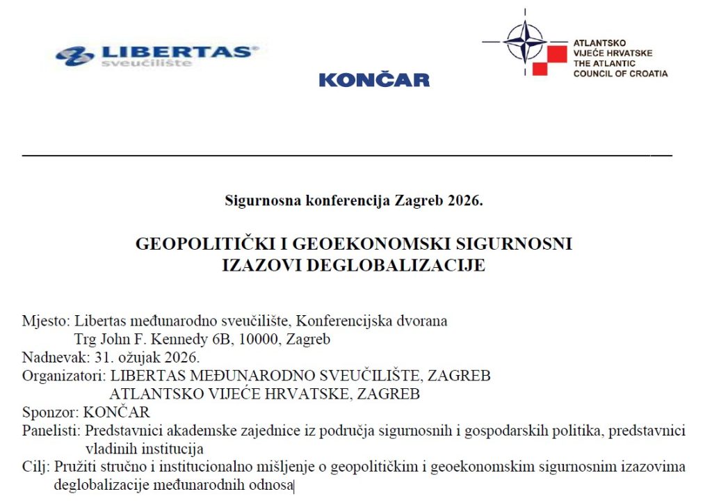 U Konferencijskoj dvorani Libertas međunarodnog sveučilišta u Zagrebu, 31. ožujka 2026. godine, uspješno je održana Sigurnosna konferencija Zagreb 2026., pod nazivom: „Geopolitičkim i geoekonomskim sigurnosnim izazovima deglobalizacije“.